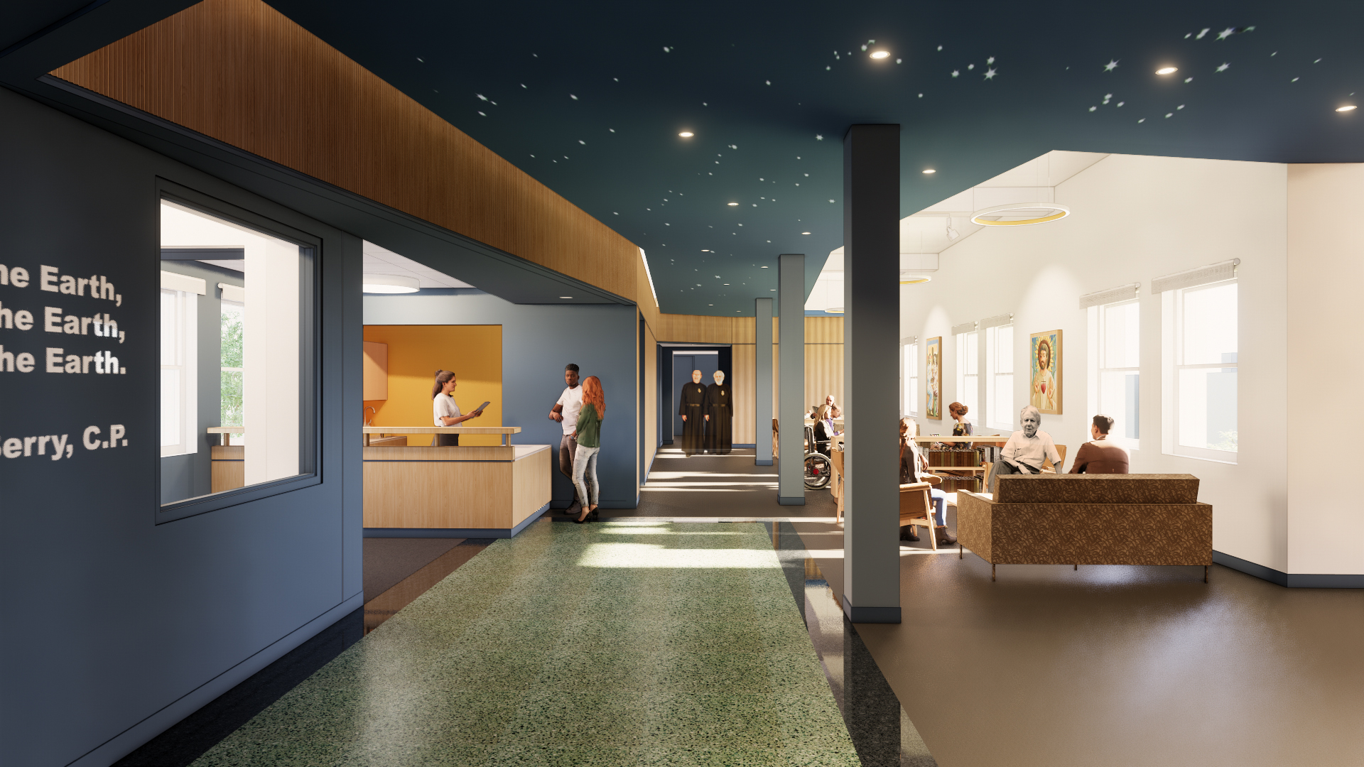 The building will be rededicated to Passionist and cultural historian Thomas Berry (1914-2009), who sought to unify ecology and Catholic thought, observing that humans “are born of the Earth, nourished by the Earth, healed by the Earth.” This vision will be manifest in on-site solar power and food cultivation, recycled and low-carbon materials, a zero-waste program, and the social support programs of the Center’s mission partners.