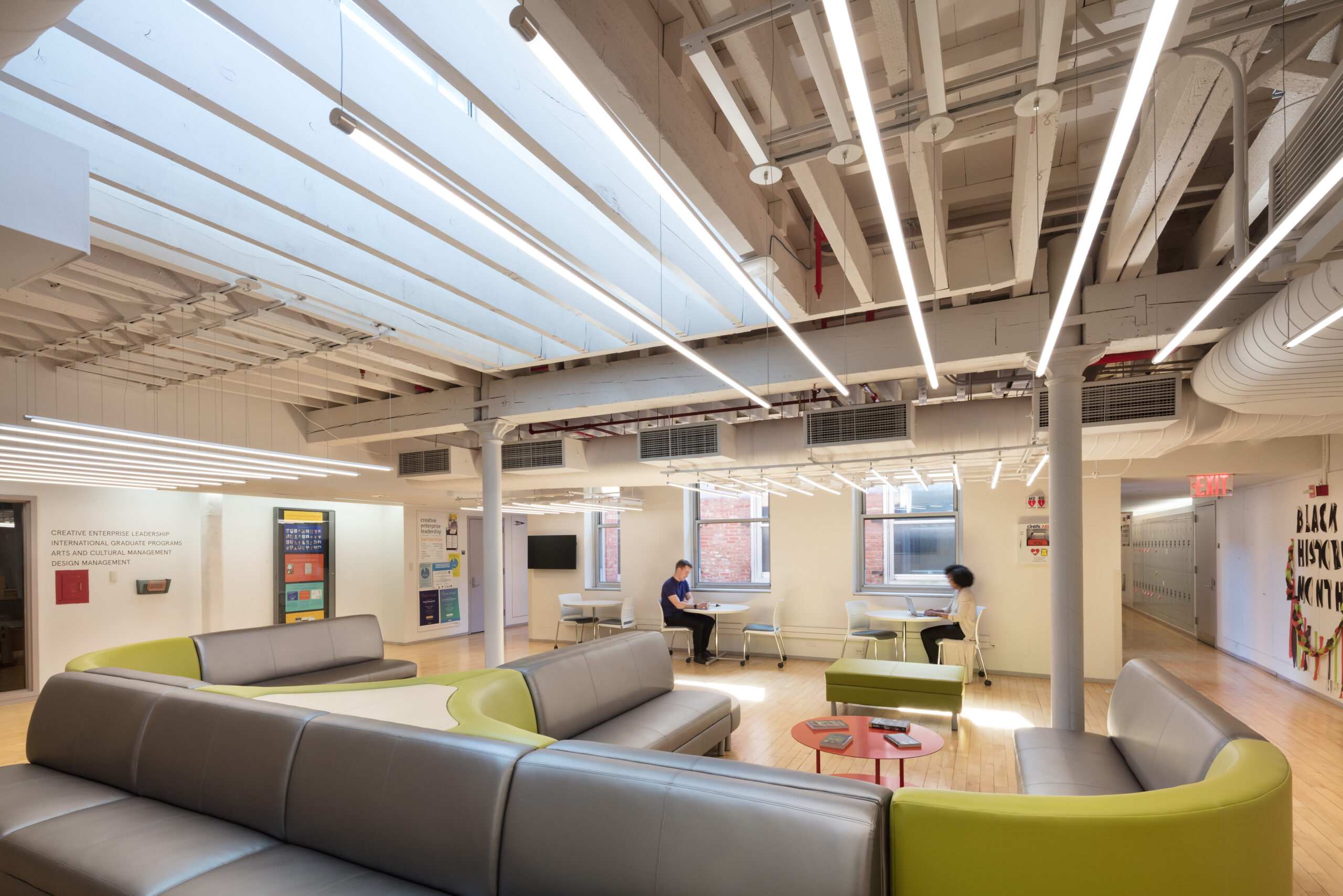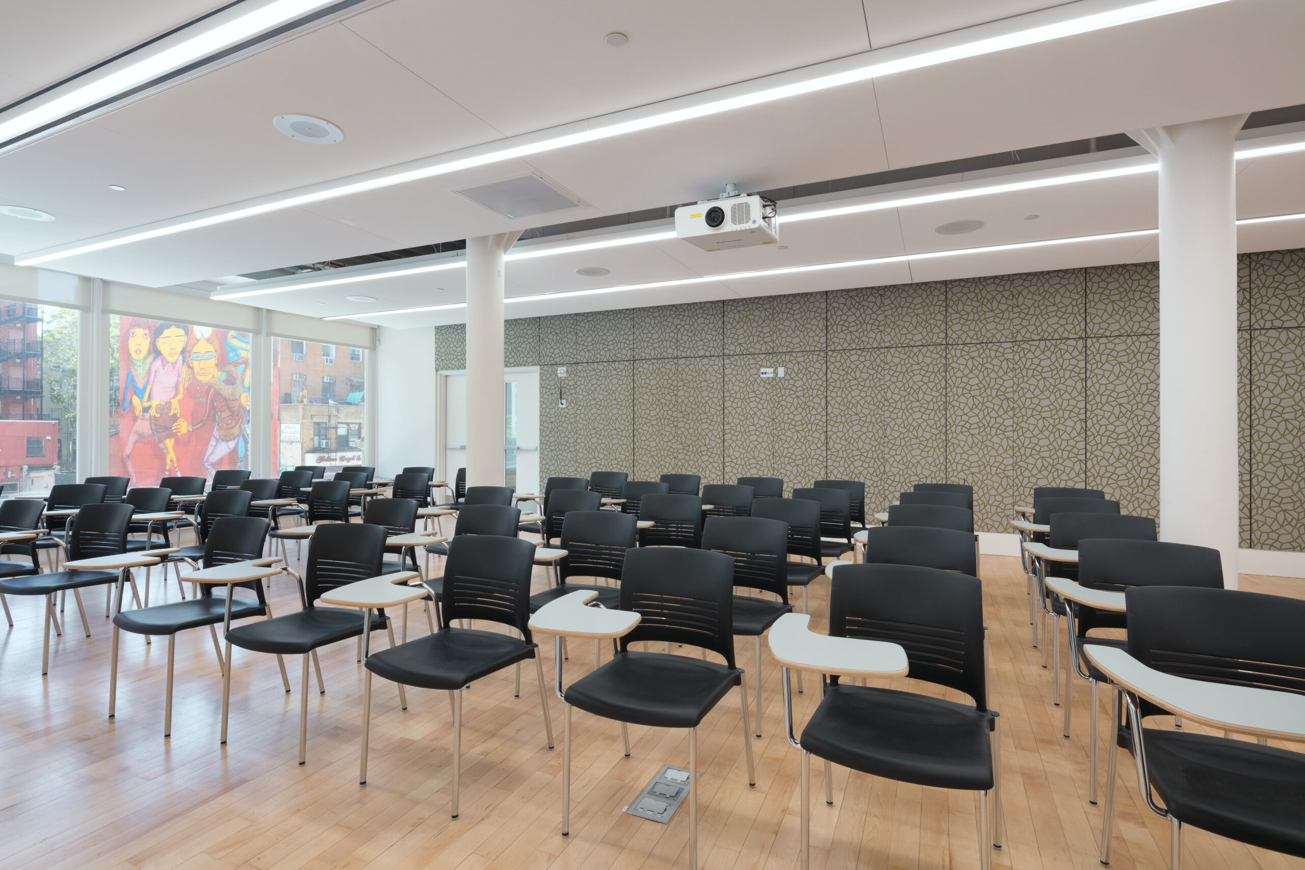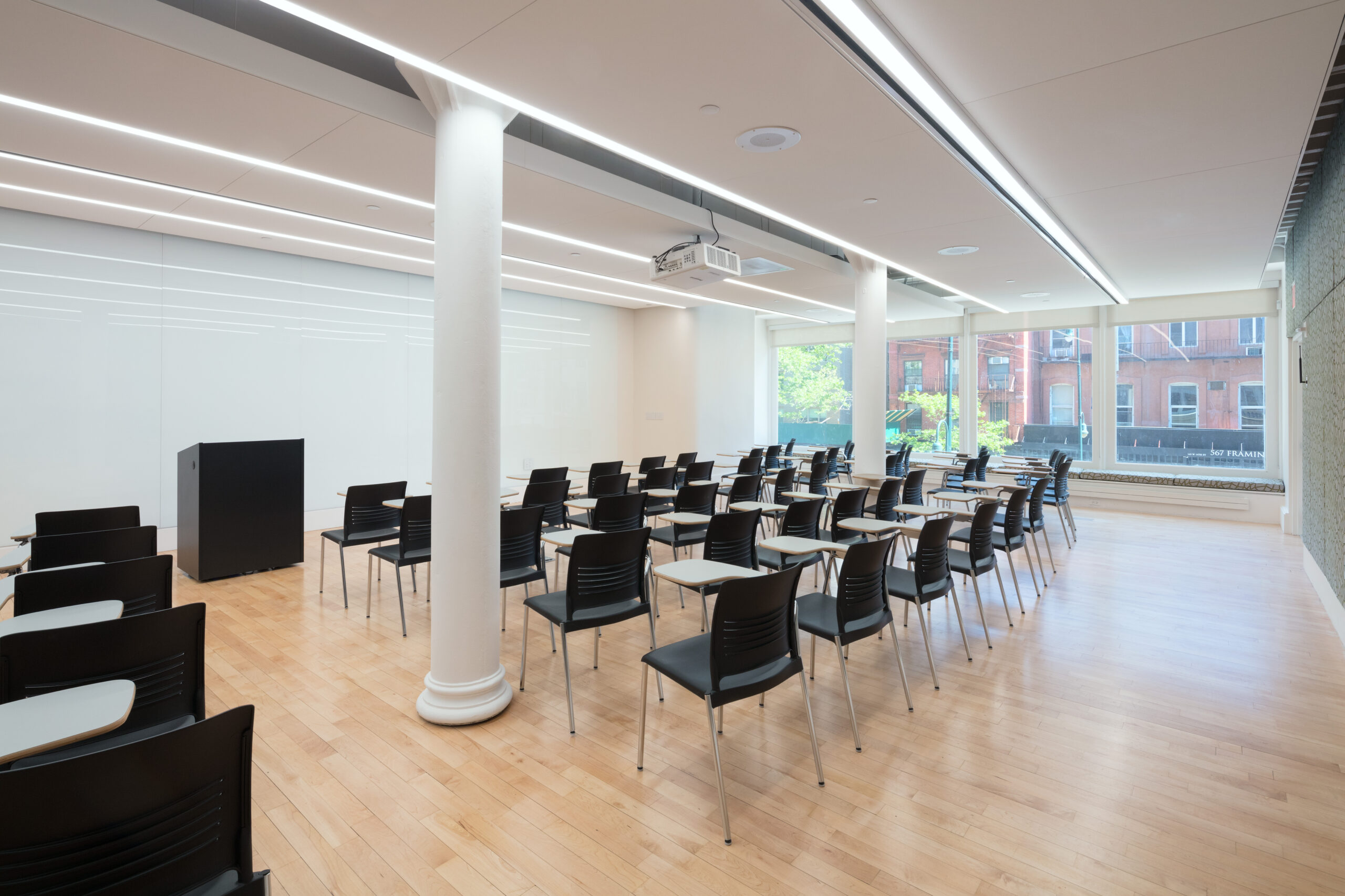 A new storefront, complying with NYC Landmark Preservation Commission Guidelines, provides views into the gallery, Pratt’s window into the world of art, architecture, fashion, and design, and invites viewers in.