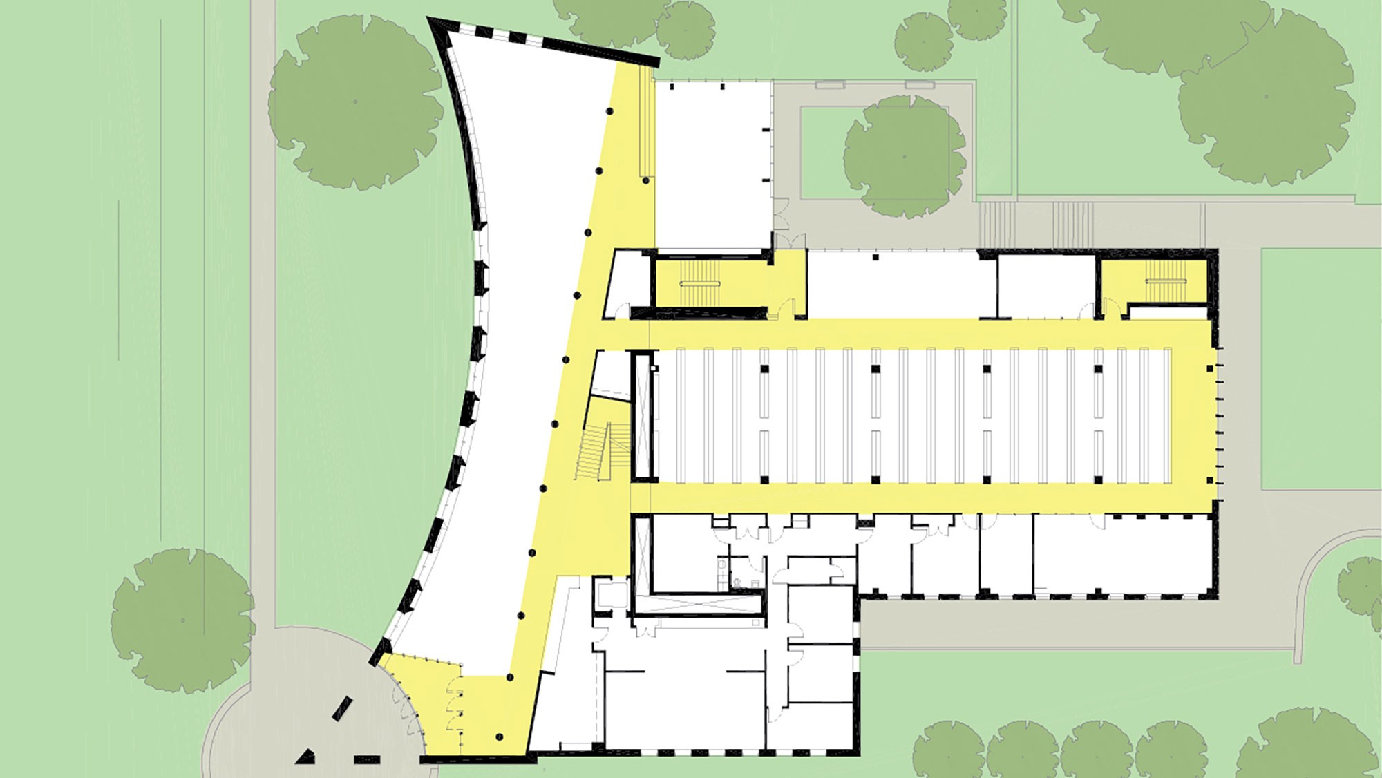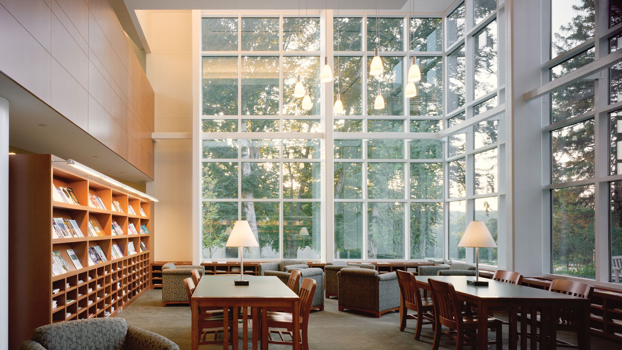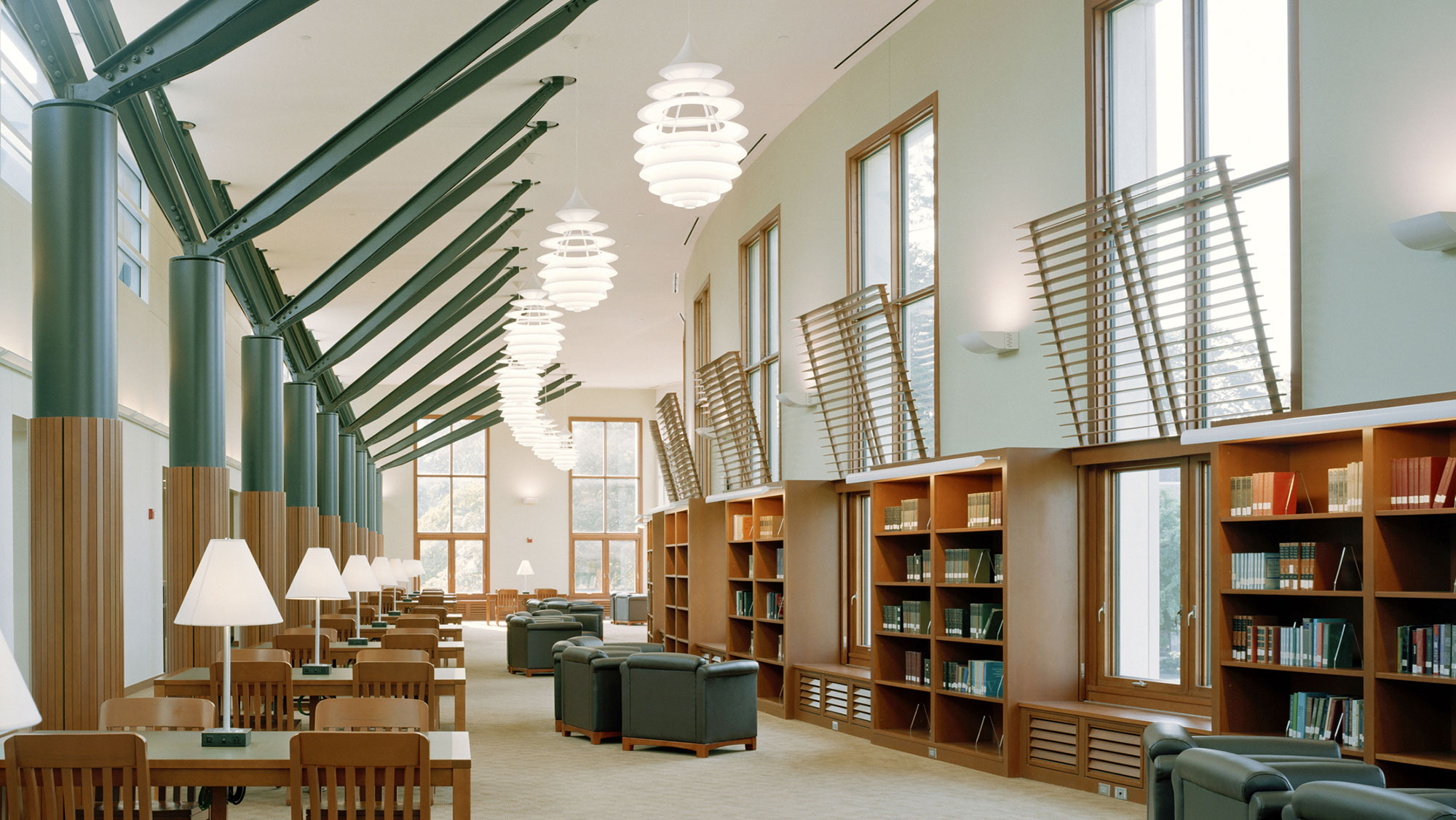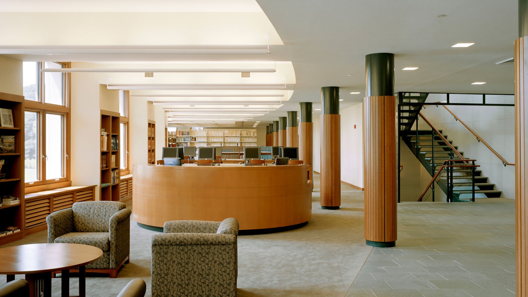 This expanded library includes reading rooms facing the campus, and intimate enclosed group study spaces that overlook sheltered gardens. Accessible stacks are housed in older portions of the building. This competition-winning expansion design accommodates 150,000 volumes, a multimedia collection, the college archive, and a curriculum library for the education program; study seating for 300 students in reading rooms; group study rooms and individual carrels; multimedia classrooms; and the Beaver College Room.
